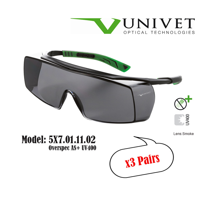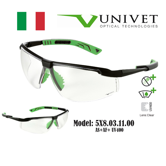 Univet 5X7,5X8 safety eyewear, spectacles for eye protection, adjustable specs, overspec OTG, impact resistant, anti-scratch, anti-fog, UV400 resistance, DIY, paintball, fishing, Gardening, Warehouse,