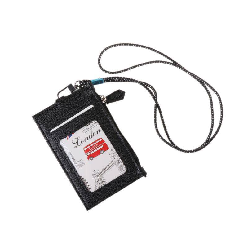 Women Business Card Holder Wallet Men PU Leather ID Cards Holders Case Neck Strap Lanyard Ladies Fashion Mini Slim Wallets