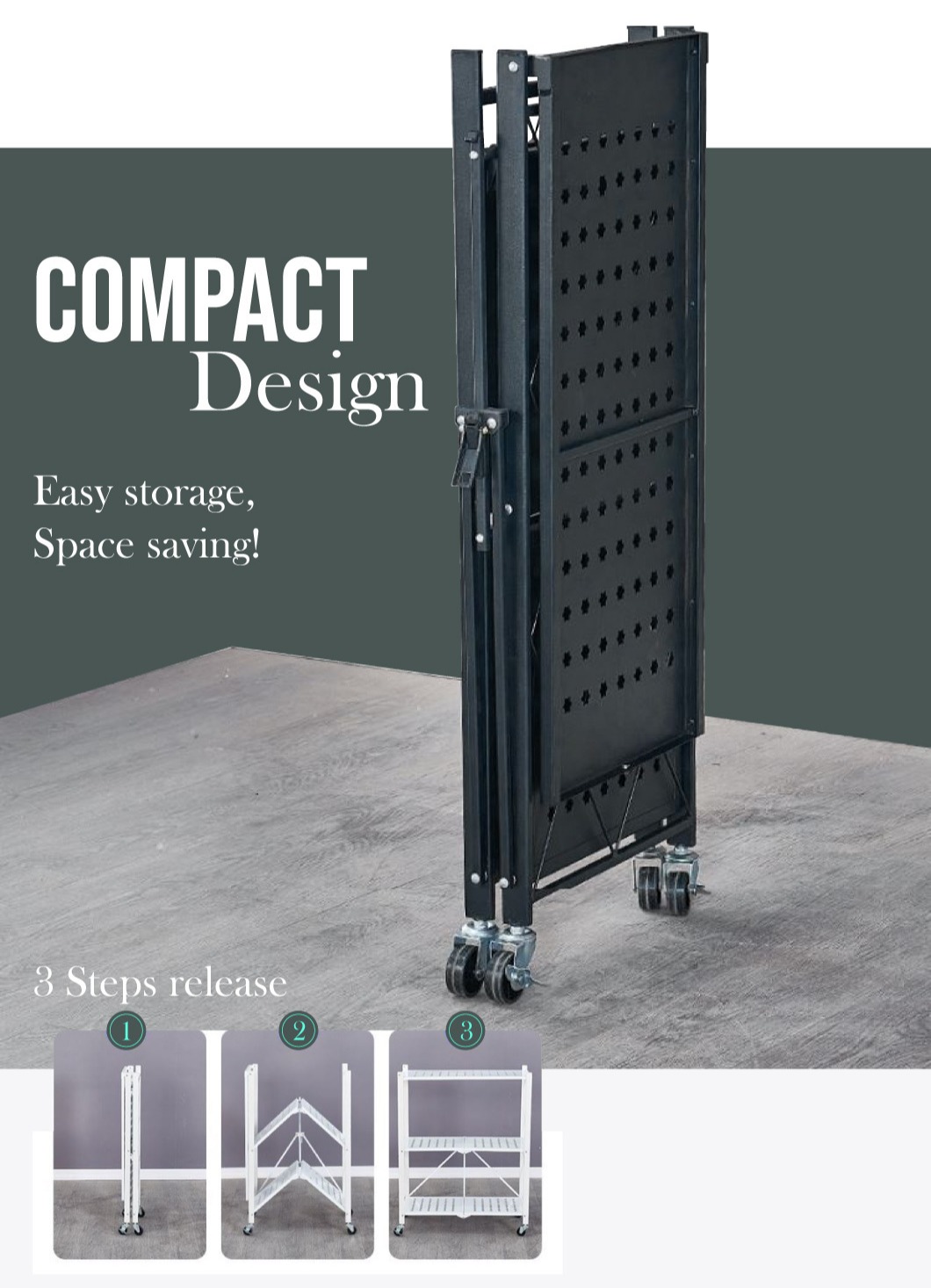 (JIJI.SG) CAMILLE Folding Storage Rack - Fully Foldable EASY INSTALL Full Metal Storage Rack Kitchen Rack / sd