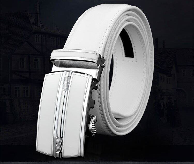CEXIKA White Plus Size LONG Men Leather Belt 130 140 150 160cm Real Cow Original Genuine Leather Automatic Buckle Width Men Waist Straps for Jeans