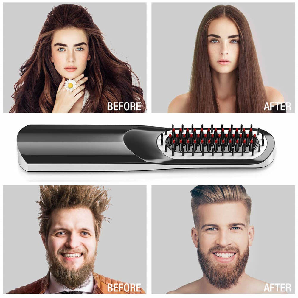 【Mini Size, Convenient to Carry】This is a wireless portable hair and beard straightening brush, which is lightweight and rechargeable via the Micro USB cable, so you don't have to worry about wire tangling anymore. No matter where you are, you can take it with you and use it to smooth out your hair or straighten your beard.