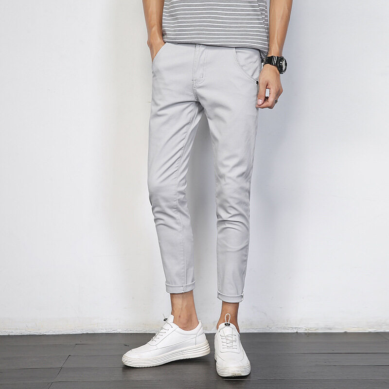 MARK BEL Summer New Men's Ankle Casual Pants Korean Version of Khaki/ Black/ Gray/ Light Blue/ Orange/ Blue Slim Pants