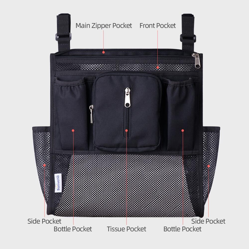 Includes two long zippered pockets and an easy-view mesh pocket that can store large and bulky items.