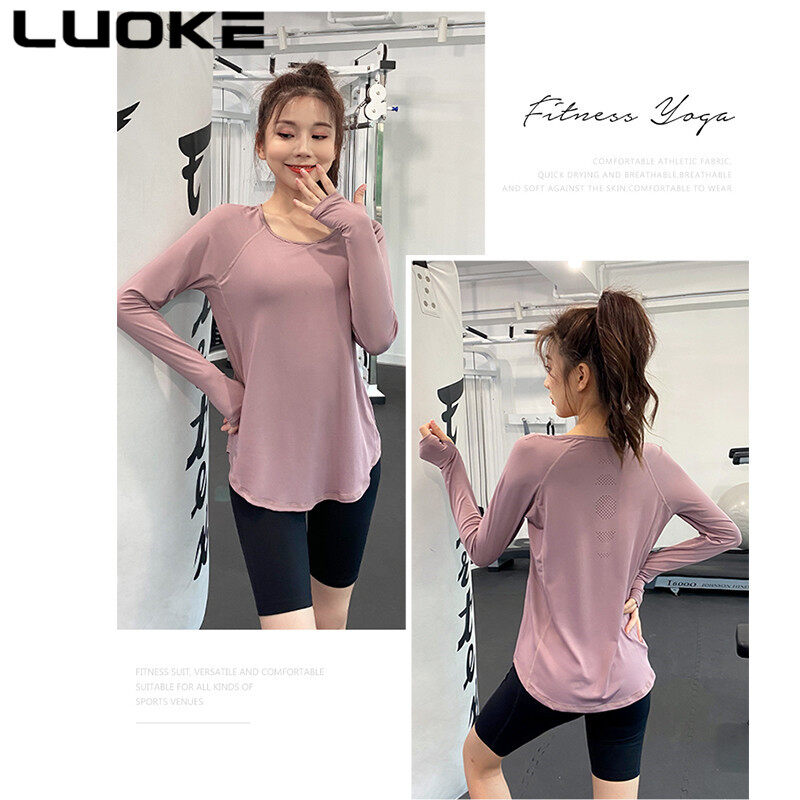 LUOKE Long Sleeve Sport Shirt for Women Elastic Quick-drying Loose Slim Yoga Tops Sports T-shirt Exercise Tops Women Sports Wear Women Top
