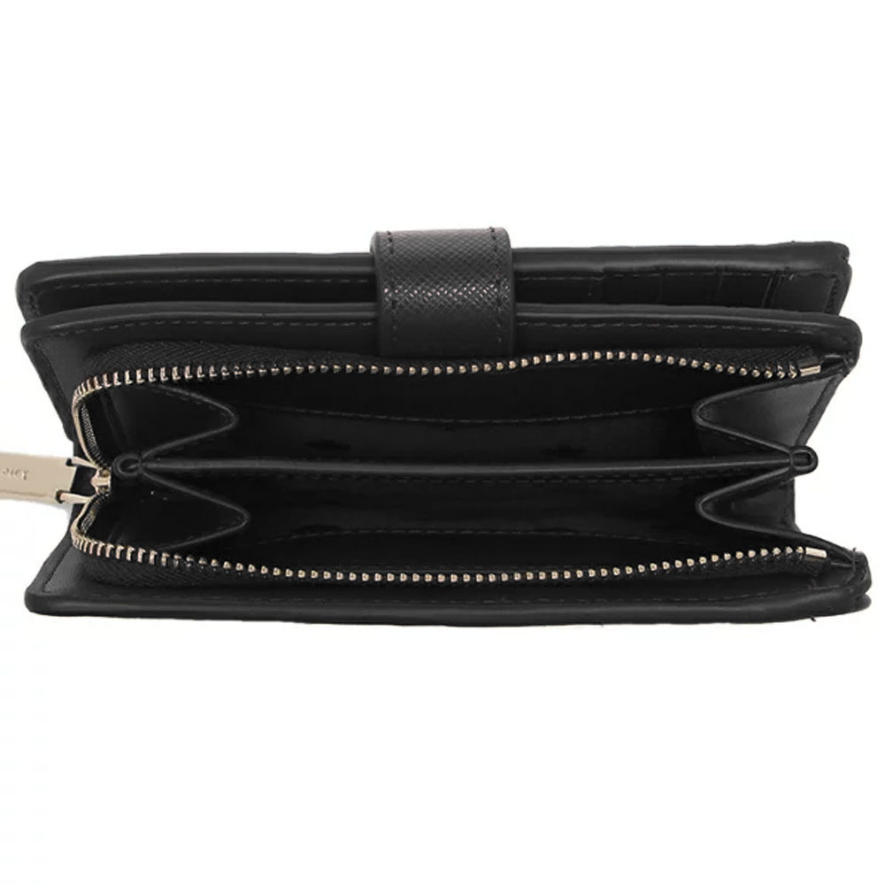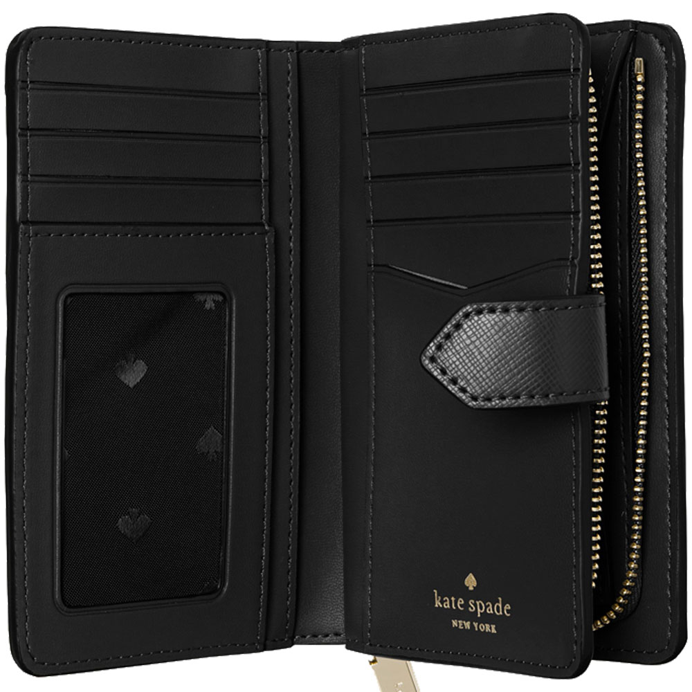 Interior features 8 card slots, 1 clear id window, bill fold, and 2 multi-functional slots