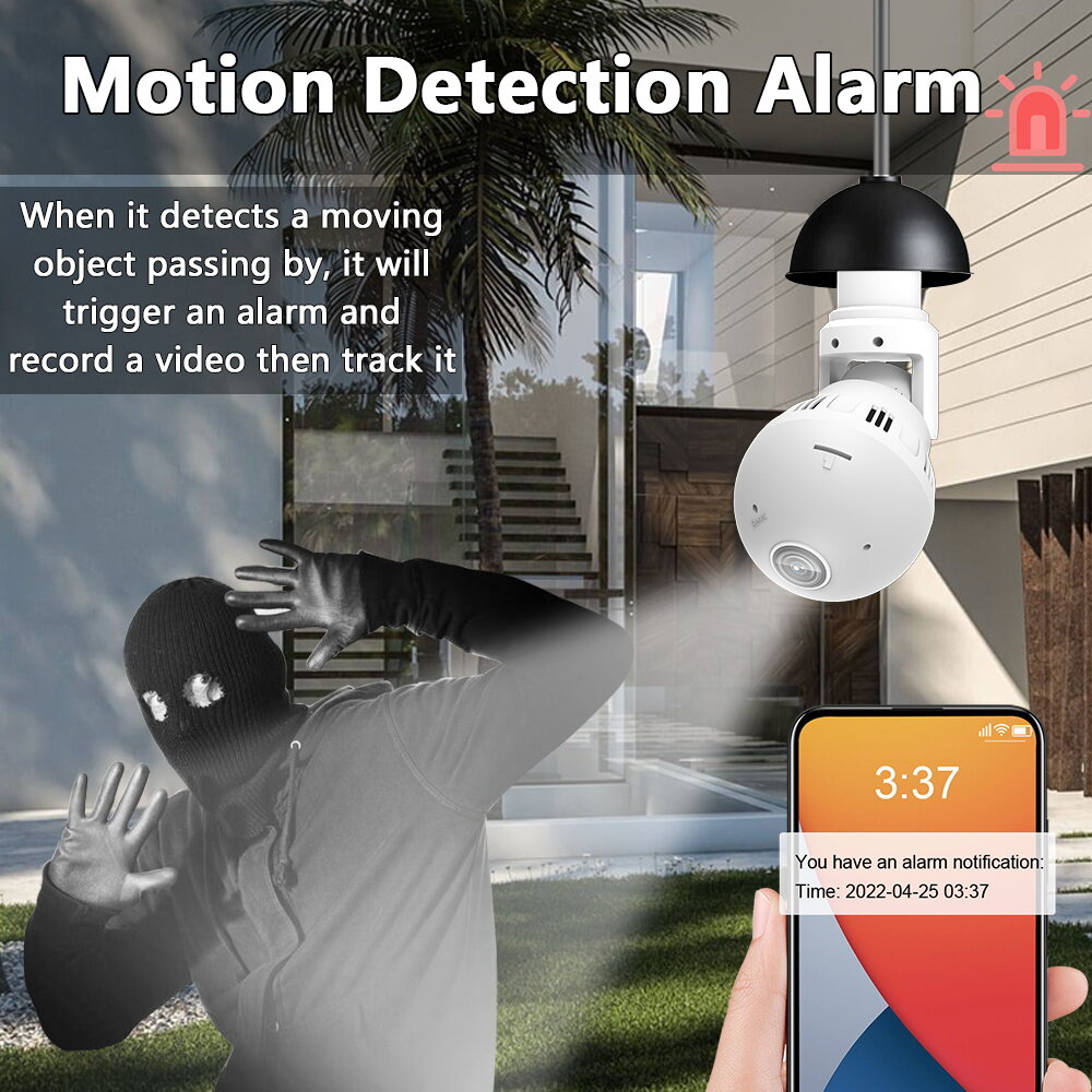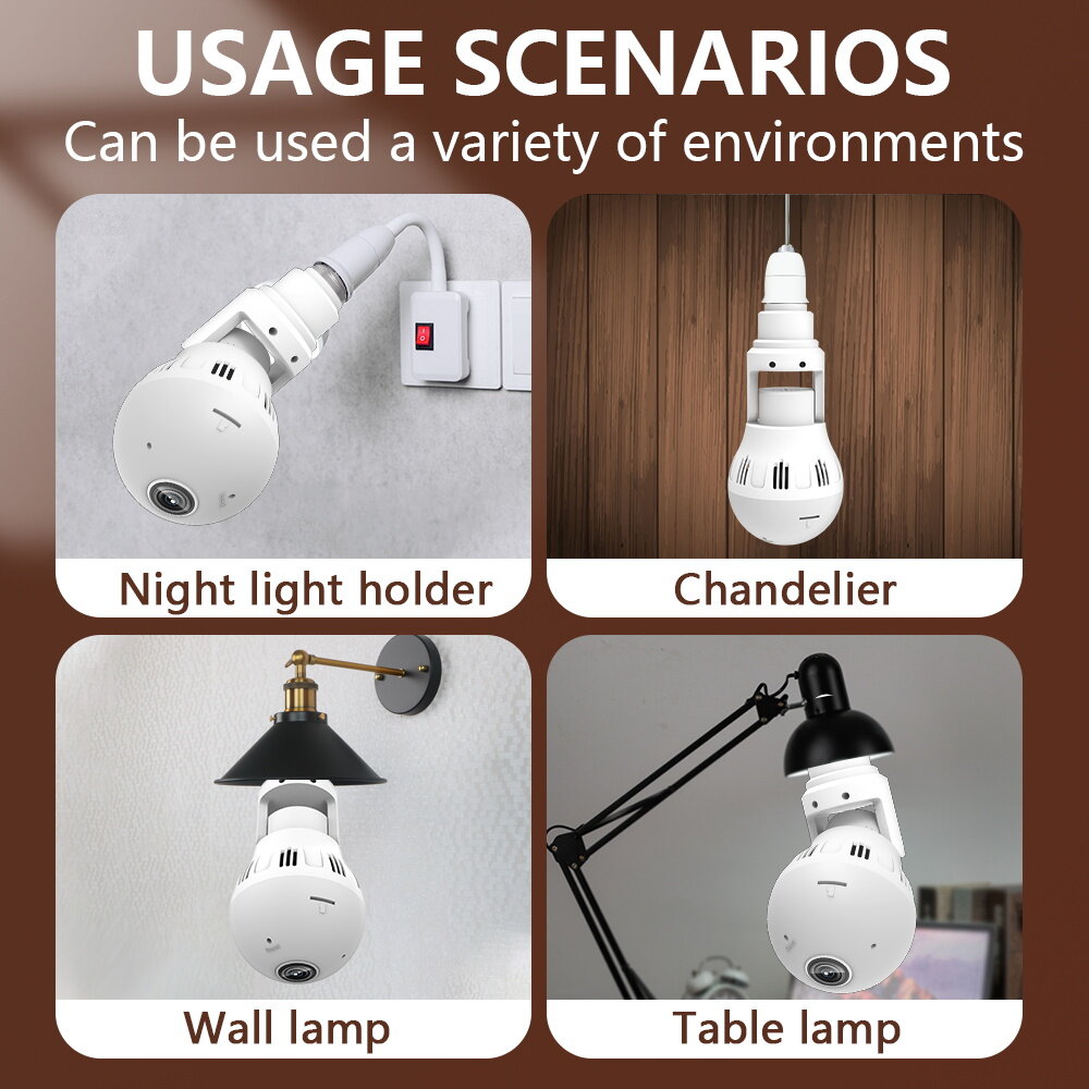 Two-way voice intercom, voice alarm, picture push, TF card recording. Equipped with E27 standard lamp holder.