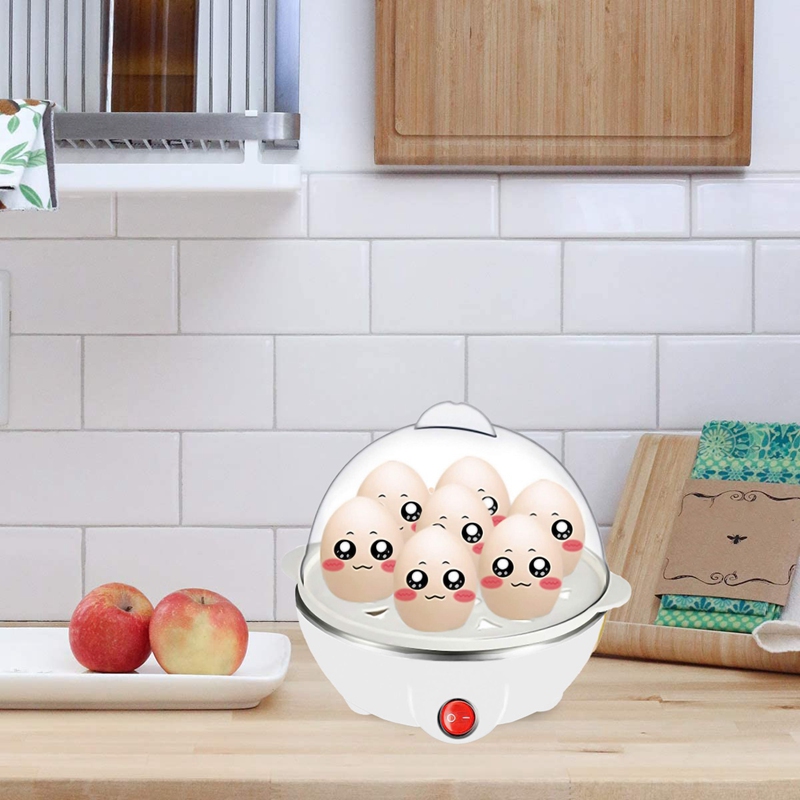 [Large capacity egg cooker]: The egg cooker tray can hold 7 eggs. It can boil soft, medium or hard eggs, just change the amount of water, and let the egg cooker do the rest. It can make breakfast for 2-3 people.