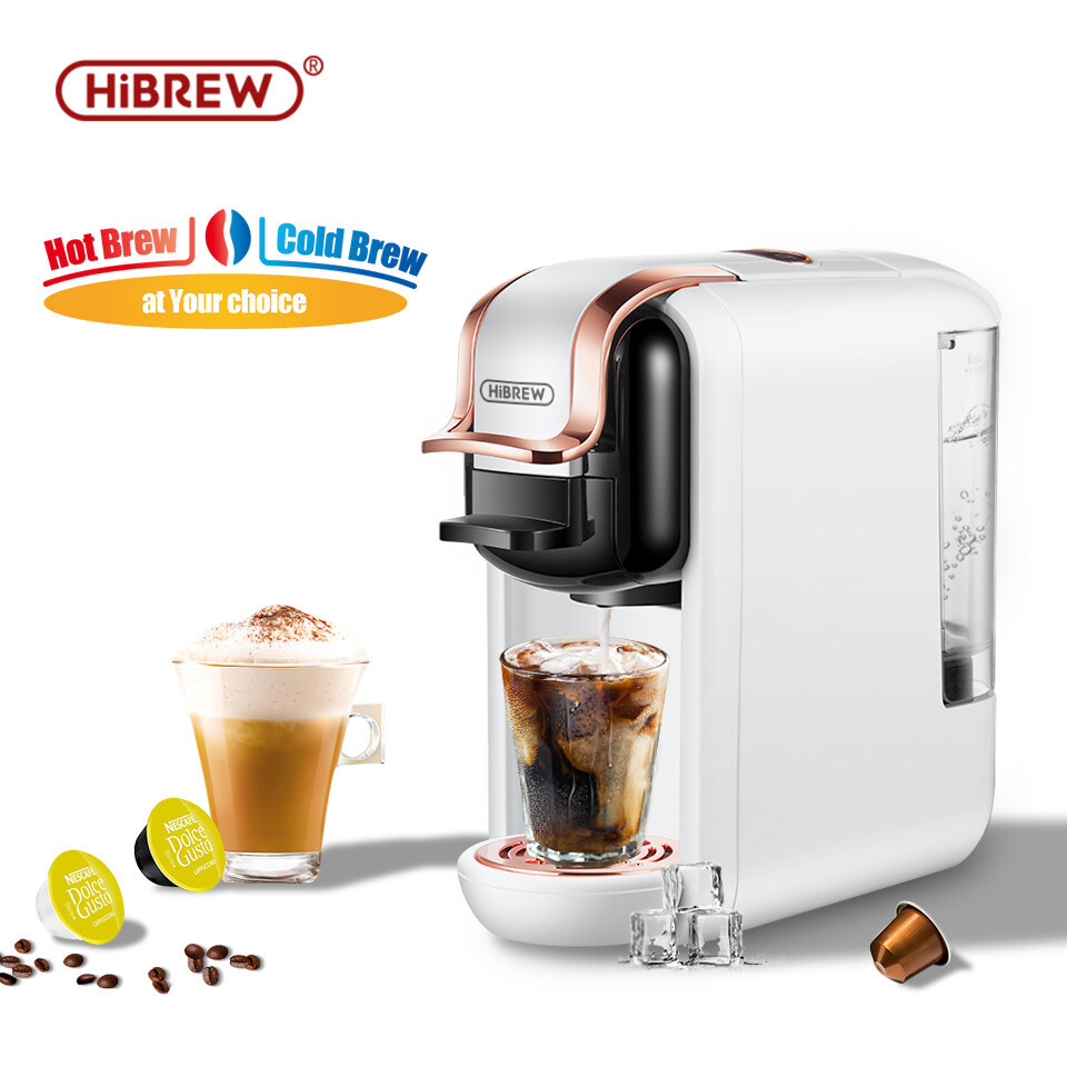HiBREW ST-514K 4in1 espresso coffee machine 19Bar automatic capsule coffee machine compatible with Nespresso, Dolce Gusto Capsule, Coffee Powder and ESE coffee pod (optional Adapter for illy pod, Lava