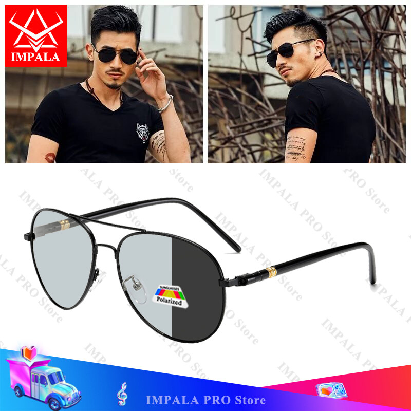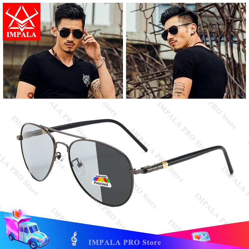 IMPALA PG1836W Fashion Photochromic Polarized Sunglasses for Men Driving Fishing Anti Glare Resin Lens Change Color Itself Men' Sunglasses UV Protection