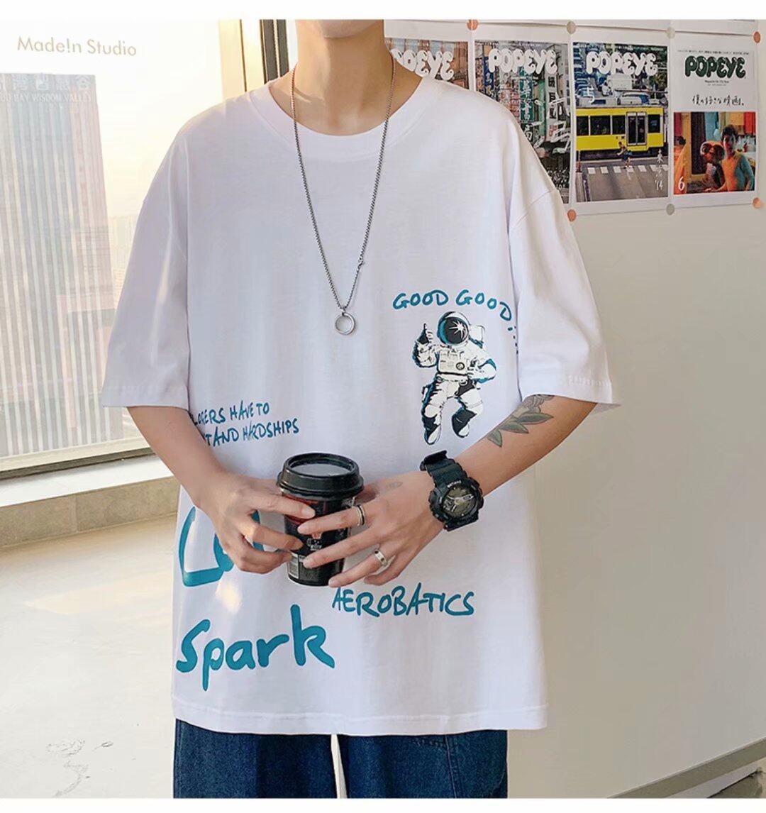 【M-3XL】 t shirt Men Oversize Short Sleeve Korean Style Plus Size t-shirt Pop Art Print Casual Fashion Tops