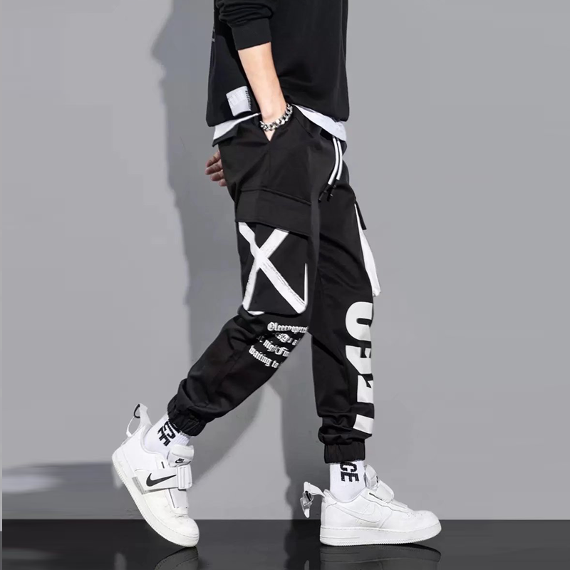 Spring and Autumn Letter Printed Overalls Men's Fashion Brand Ankle-tied Loose Hip Hop Casual Pants Fried Street Ins Super Hot Pants