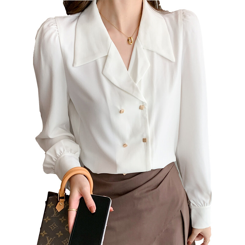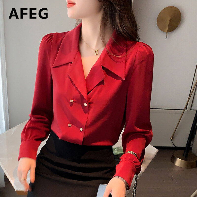 AFEG new Korean fashion loose wild retro chiffon puff sleeve blouse for women