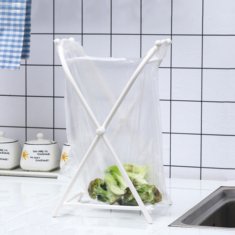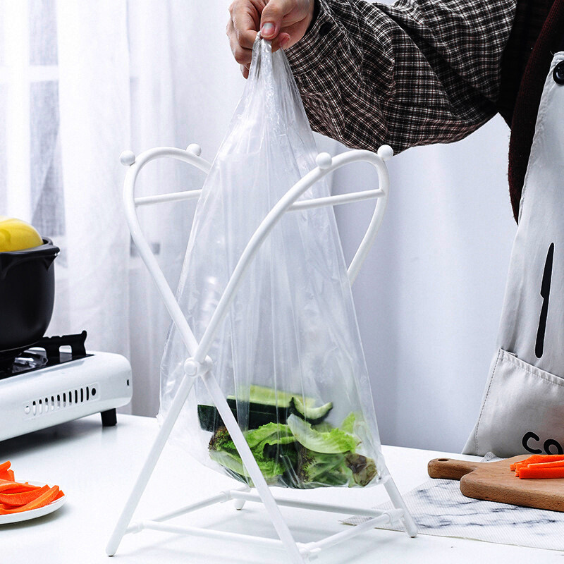 1pcs Kitchen Storage Organizer Desk Floor Trash Support Shelf Tote Foldable Garbage Bag Rack Bag Bracket Holder Home Accessories