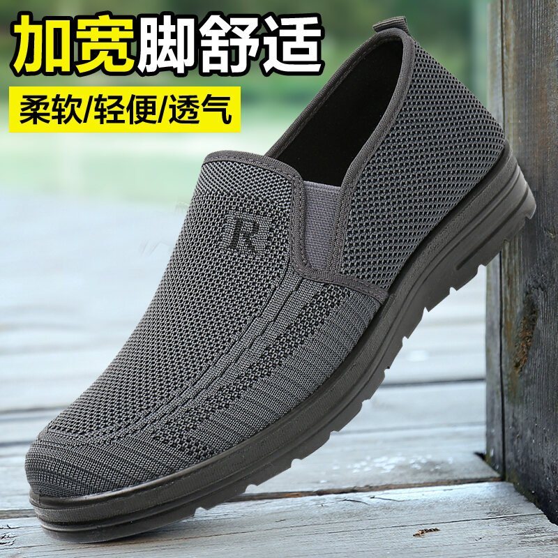 New Arrival Old Beijing Cloth Shoes Men's Spring & Fall Flying Woven Breathable Middle-Aged and Elderly Thick Sole Loose Elderly Oversized Shoes Dad Shoes
