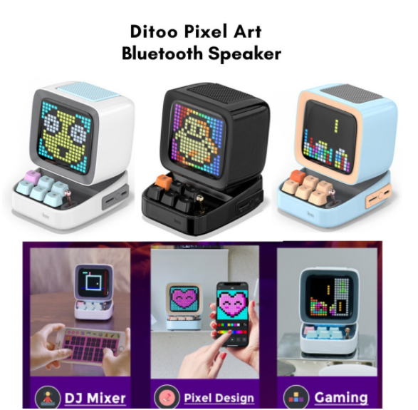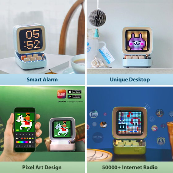 [SG warranty]Divoom Ditoo Plus / with Mic Retro Pixel Bluetooth Portable Speaker Alarm Clock DIY LED Screen gift Home decoration