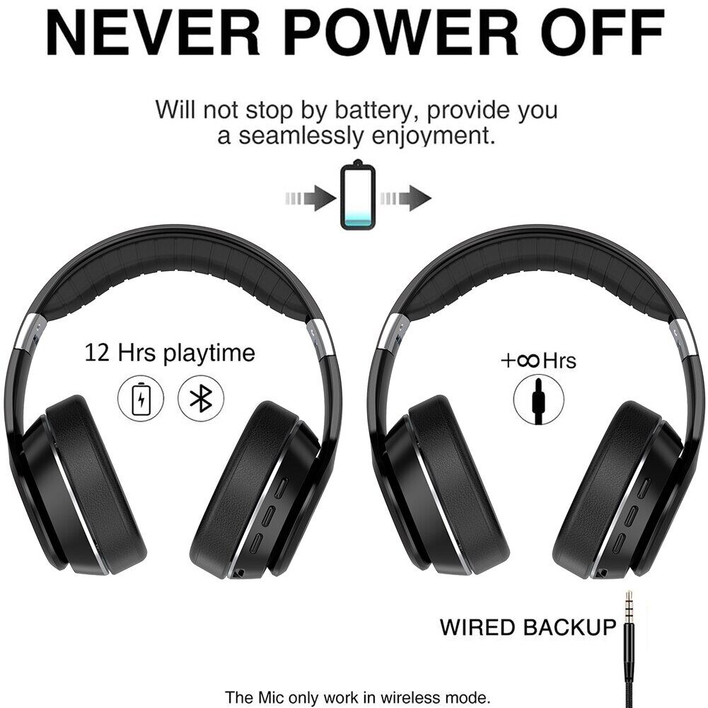 The Wired mode: you can also use it as a wired headphone with the provided audio cable so the headphones will never power off