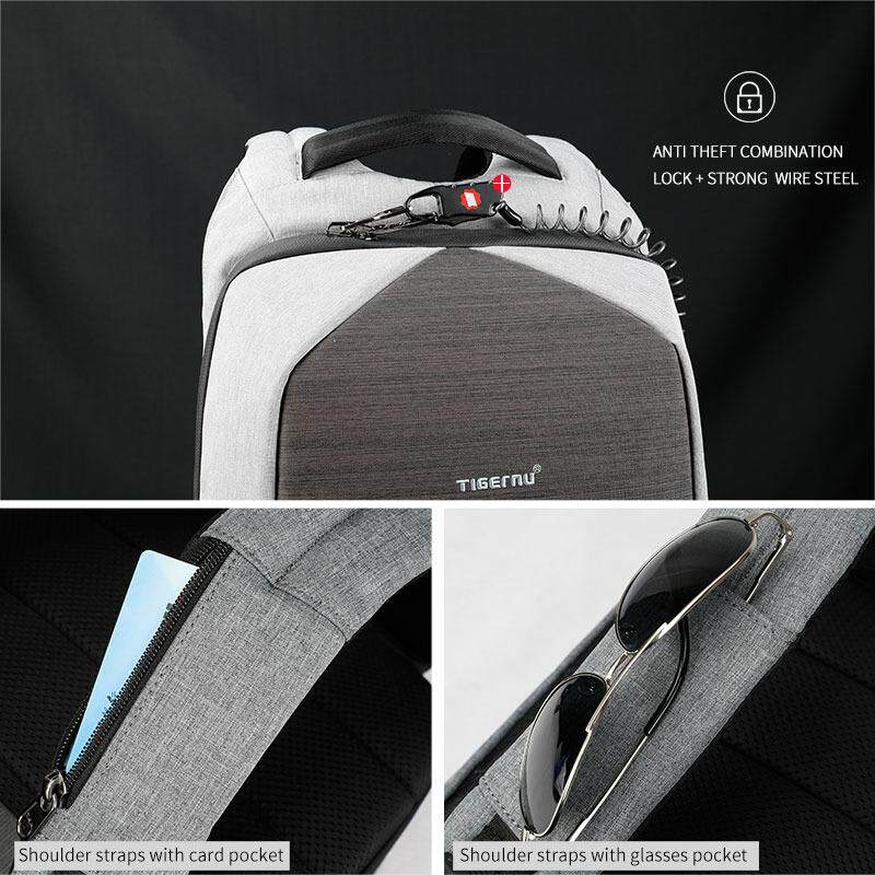 Anti theft backpack Tigernu New Design Anti-theft Waterproof Laptop Backpack Fanshion Men Bags USB Charging Port Business Backpack for Men - intl