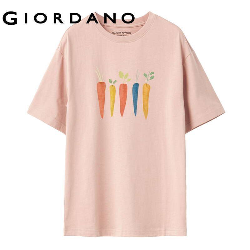 GIORDANO Women HuaXianSheng Series T-Shirts Short Sleeve Breathable Summer Tee Print Graphic Cotton Casual T-Shirts 99392034