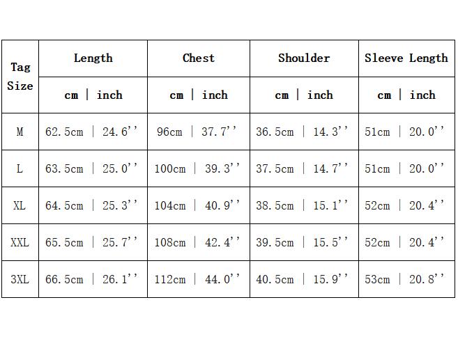 LengthChestShoulderSleeve Length