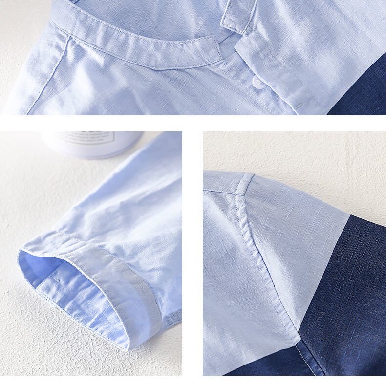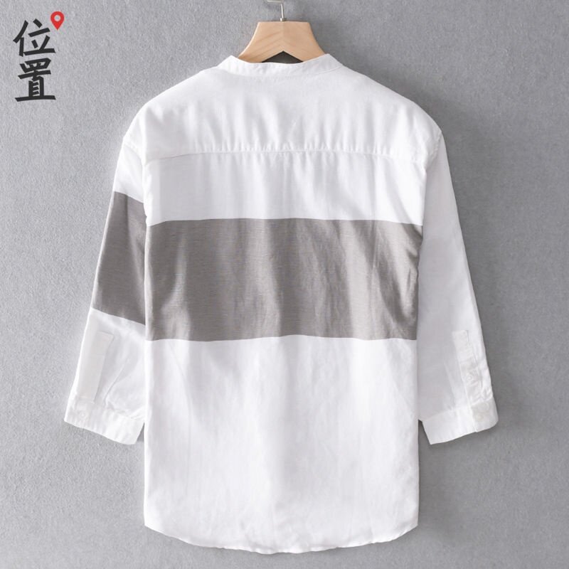 Summer Cotton Linen Short Sleeve Shirt Men Color Matching Seven-point Sleeve Shirt Trend Jacket