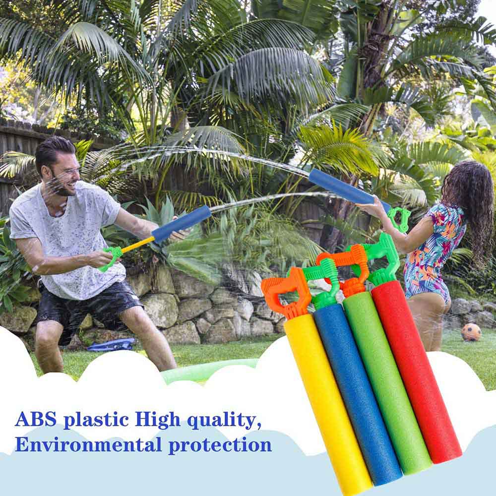 [Safe and efficient]: This water gun is made of foam and plastic. It is the safest, lightest and easiest to use water gun. Using environmentally friendly materials, the foam material feels softer and will not harm the delicate skin of kids.