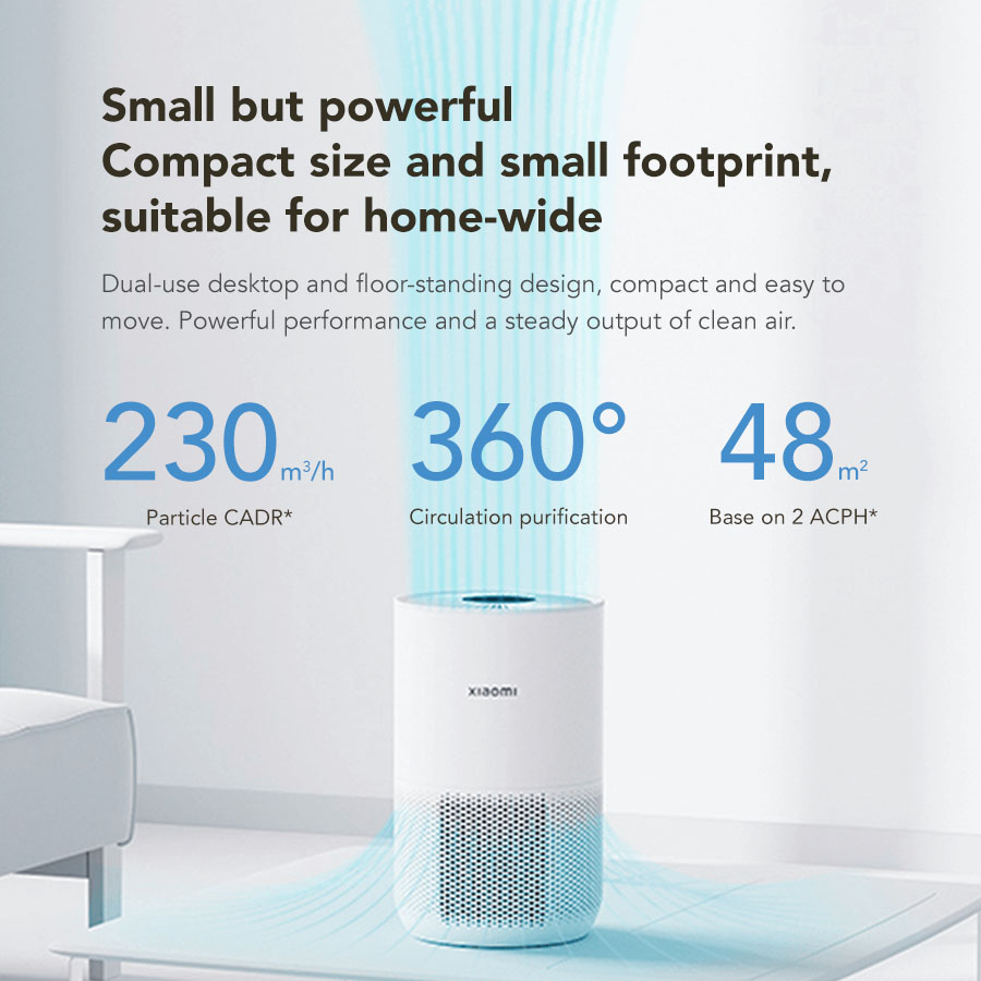 Xiaomi Mi Smart Air Purifier 4 Compact Size and Small Footprint High-efficiency Filtration PCADR 230m3/h Suitable for 16-27m2 Bedroom Smart control with Xiaomi Home App