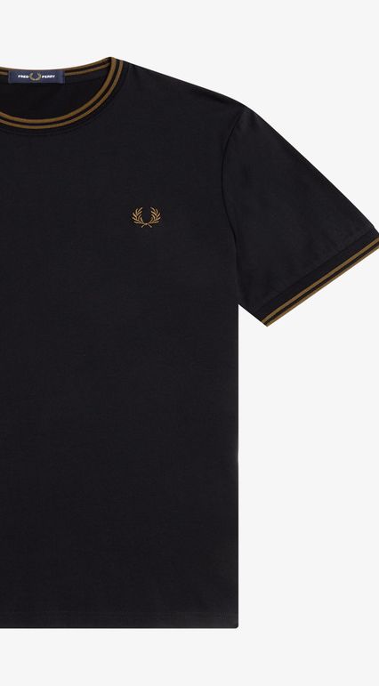 Legend has it, our twin tipping came about when a buyer from Lillywhites requested the addition of football team colours to Fred's plain-colour tennis shirt. Only we use tipping in the ratio 5-4-4 and it’s a part of our DNA. Designed with our signature detailing, our crew neck T-shirt features twin tipping and colour-matched Laurel Wreath embroidery. Very very Fred Perry.