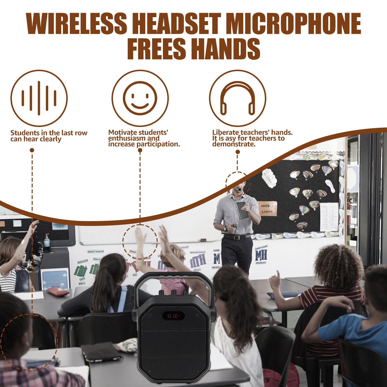 During classroom teaching, the main lecturer and the teaching assistant can each wear a wireless headset, and the teaching assistant can help maintain classroom order when the main lecturer is teaching.