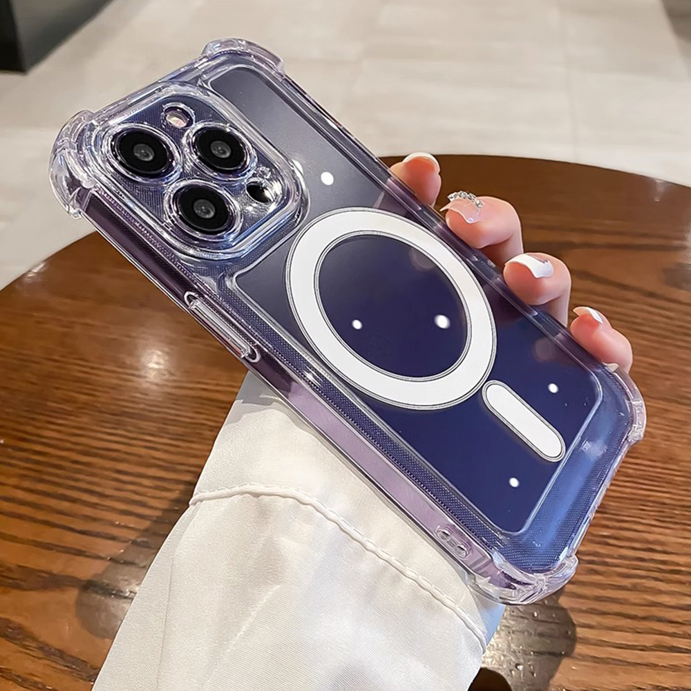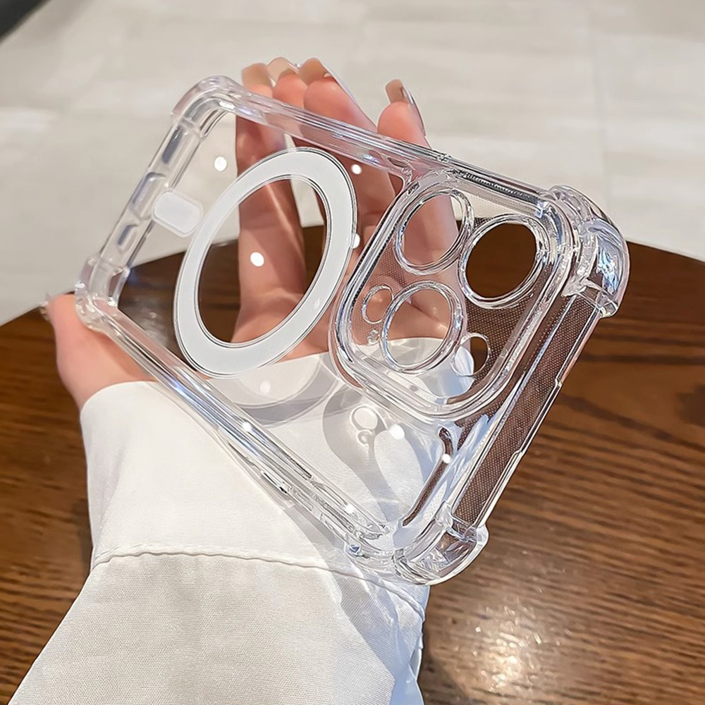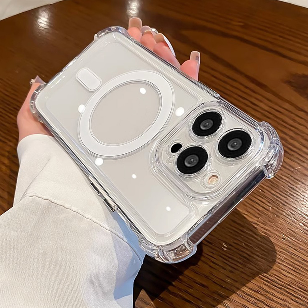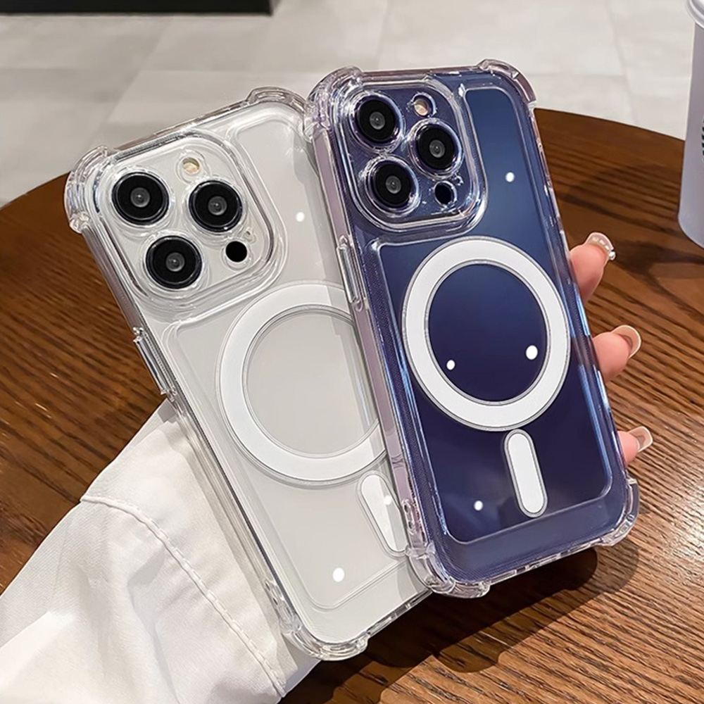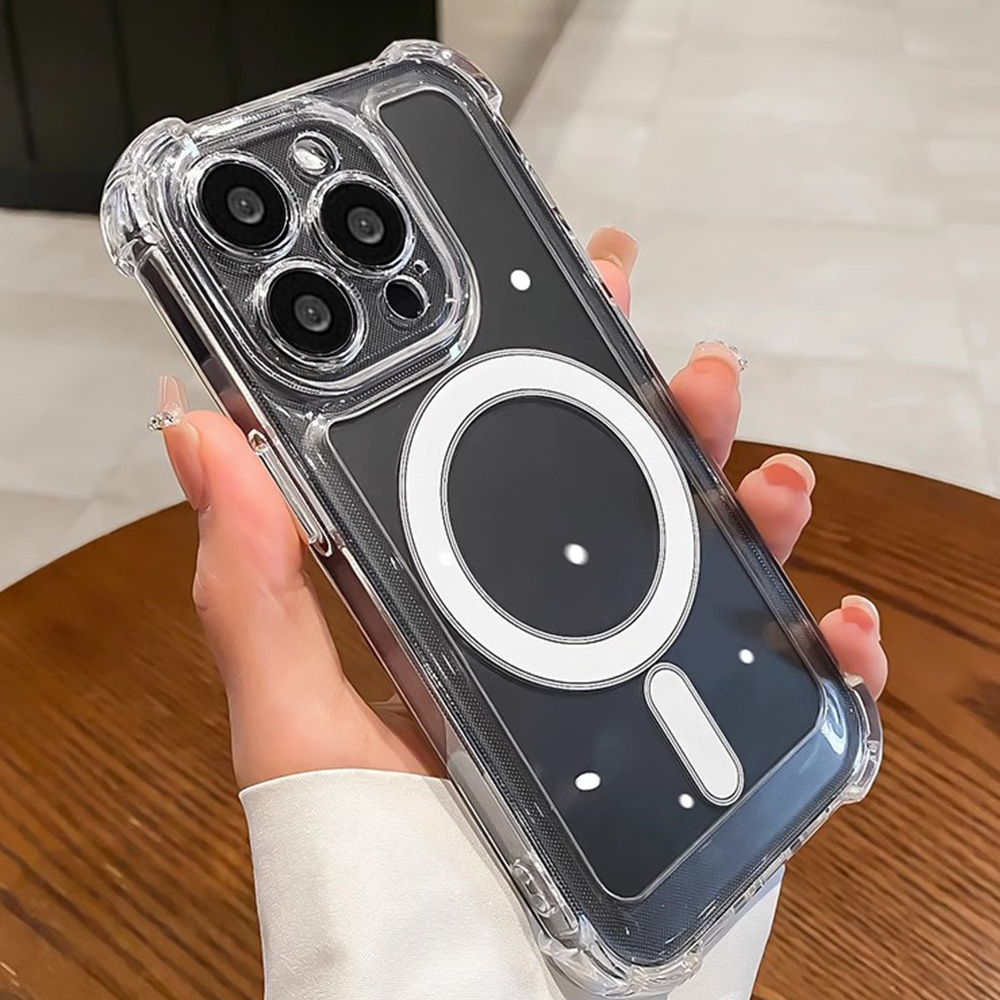 Four Corners Thickened Shockproof Magnetic Charging Phone Case for IPhone 11 14 13 12 Pro Max 7Plus 8 Plus XR XS X Plus Clear Soft Silicone Back Cover