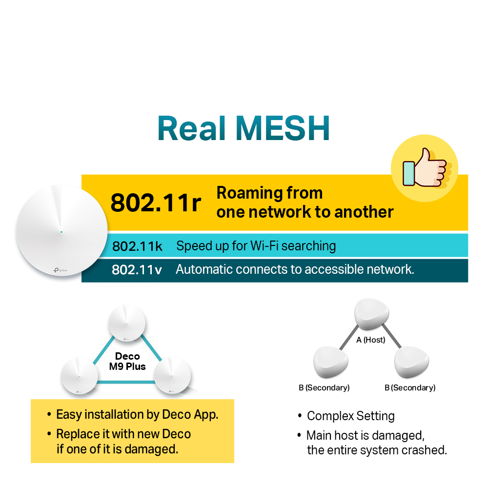 TP-LINK Deco M9 Plus(3-pack) AC2200 Tri Band Gigabit MU-MIMO WiFi Mesh Router (Whole Smart Home Mesh WiFi System) Works with all Telcos (Supports IPTV)