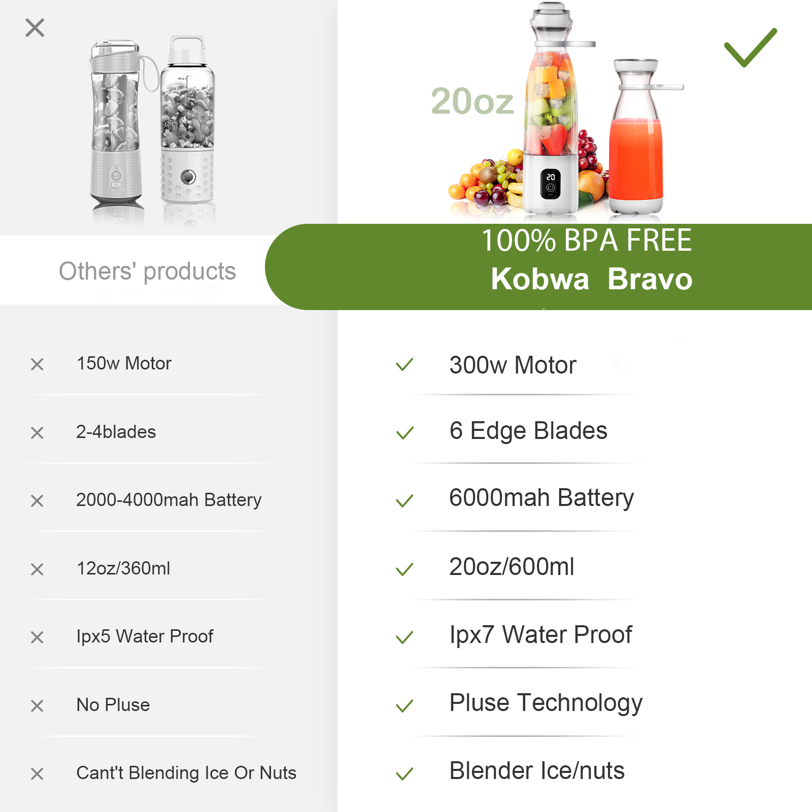 Kobwa Personal Portable Blender - 4 KEY ADVANTAGES: EFFICIENCY, DESIGN, VERSATILITY, PROTECTION.