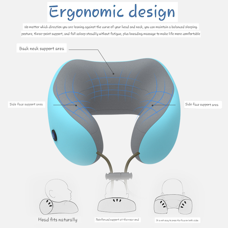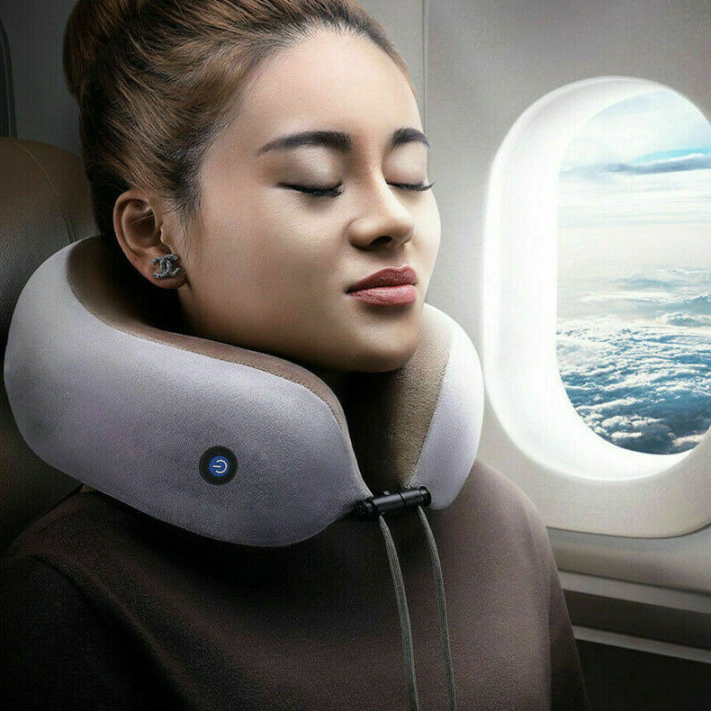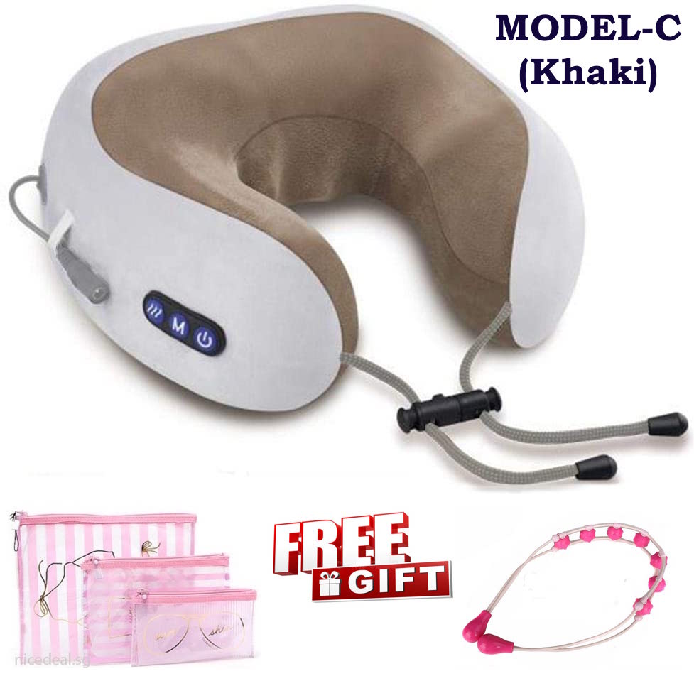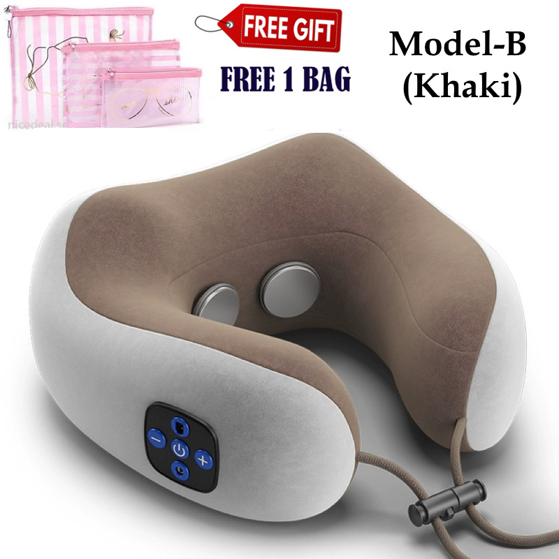 [Free Gift Bundle Set] USB Rechargeable Electric Neck Massage Pillow Kneading Vibrate Massage U-shape Head Support Massager Shoulder Cervical Muscles Pain Relief Sleep Travel Pillows For Office Home C