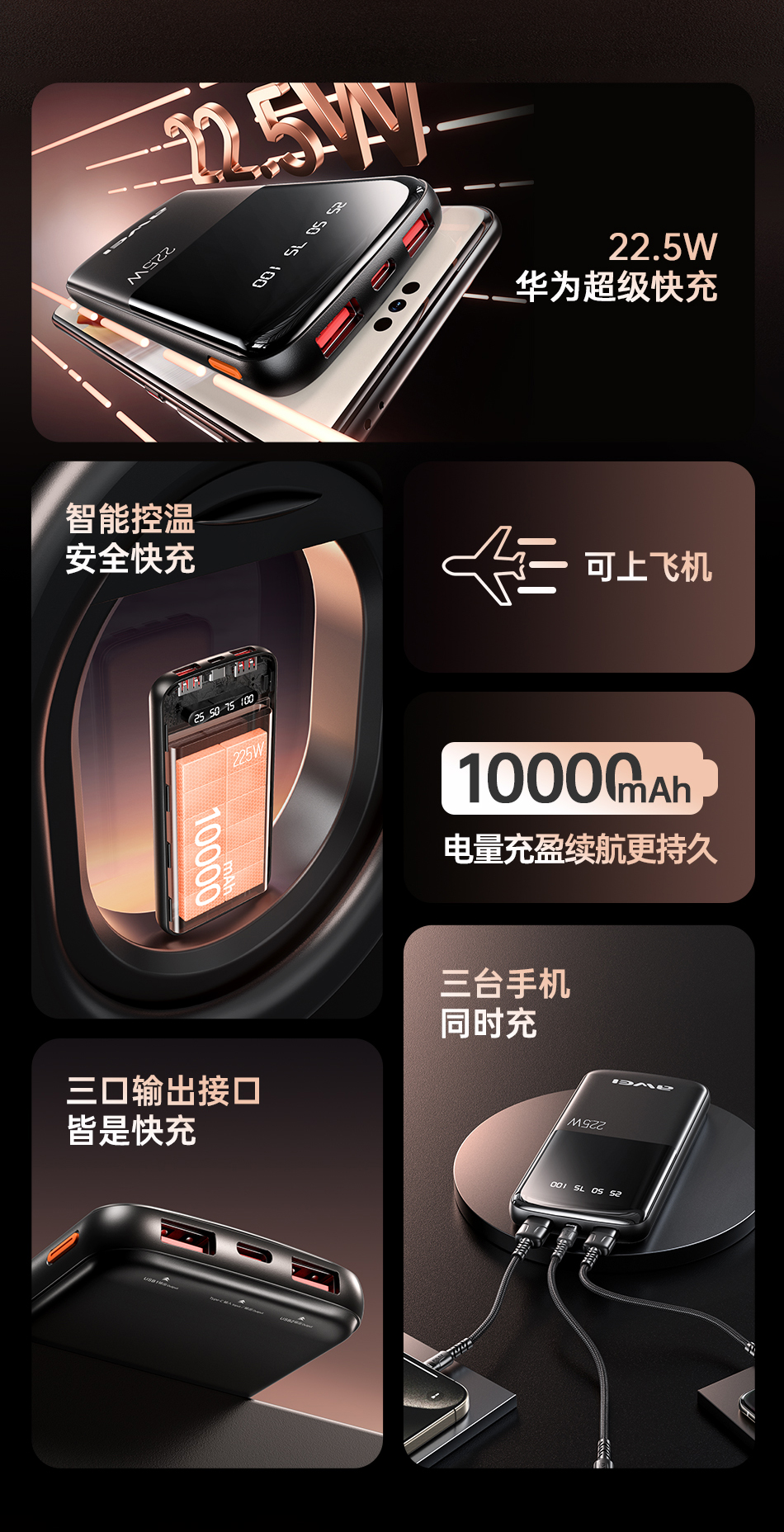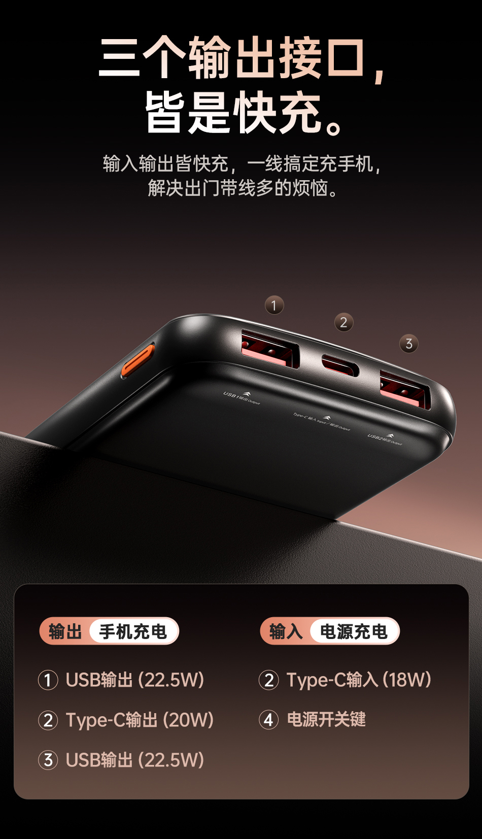 Type-A1 port outputs: 10V/2.25A, 5V/3A, 9V/2A, 12V/1.5A