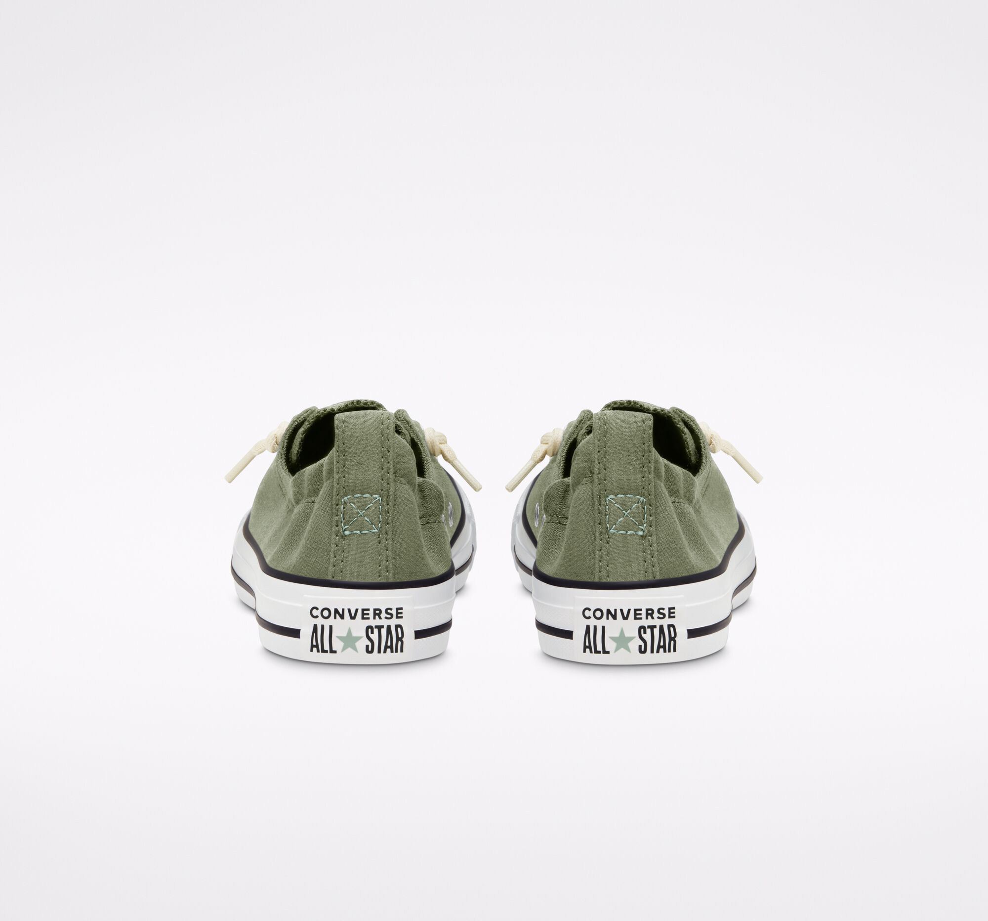 CAREFREE.The laidback design, reinvented. The Shoreline Linen Low Top sneaker is a relaxed and reconstructed take on the Chuck Taylor shoe, with an elasticized collar and knotted laces. Pop-color stitching on the heel stay and tongue logo adds new dimension, while the linen upper brings on the breeze. Easy on. Easy off.