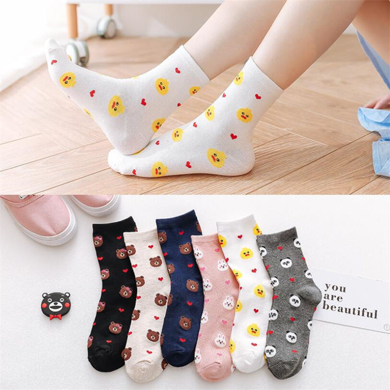 (10 pairs, 10 colors) Brown bear socks For Women Men Kids Children Cute Cartoon Short Socks