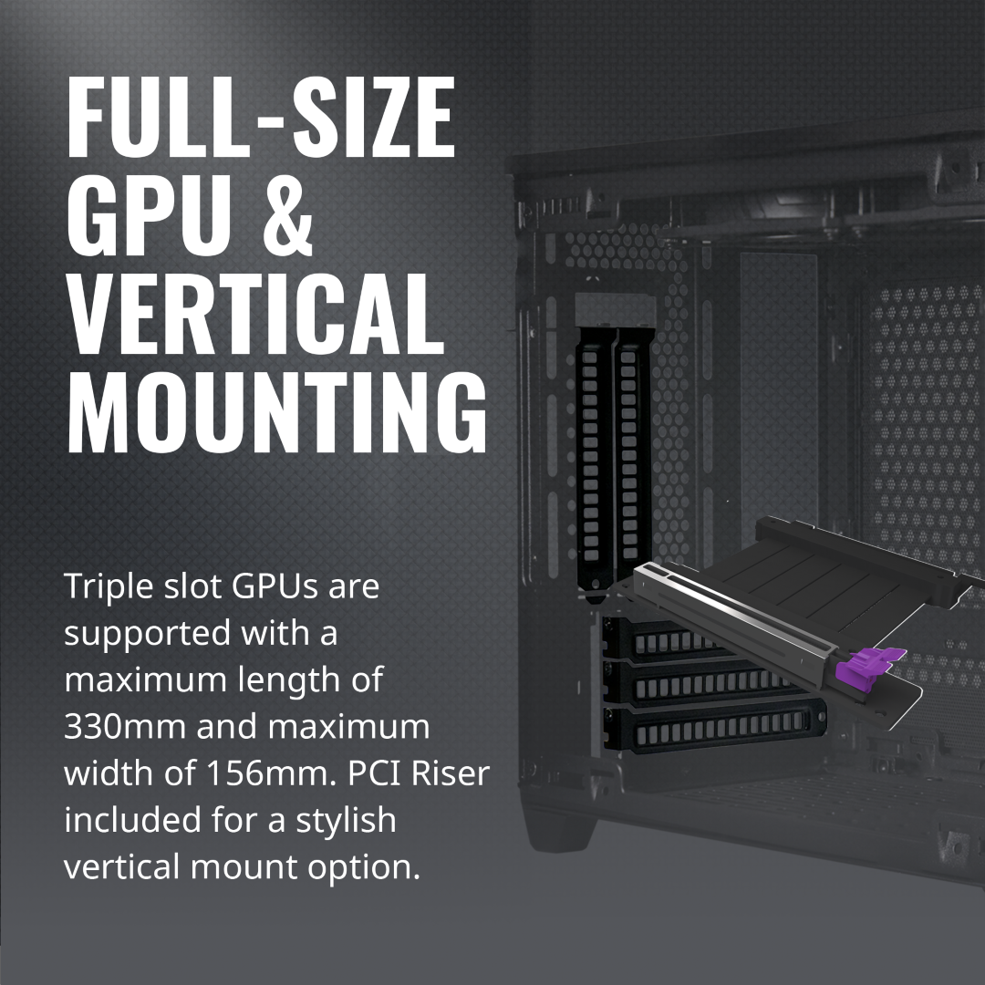 Triple-slot GPU Support with Included Vertical Riser Cable