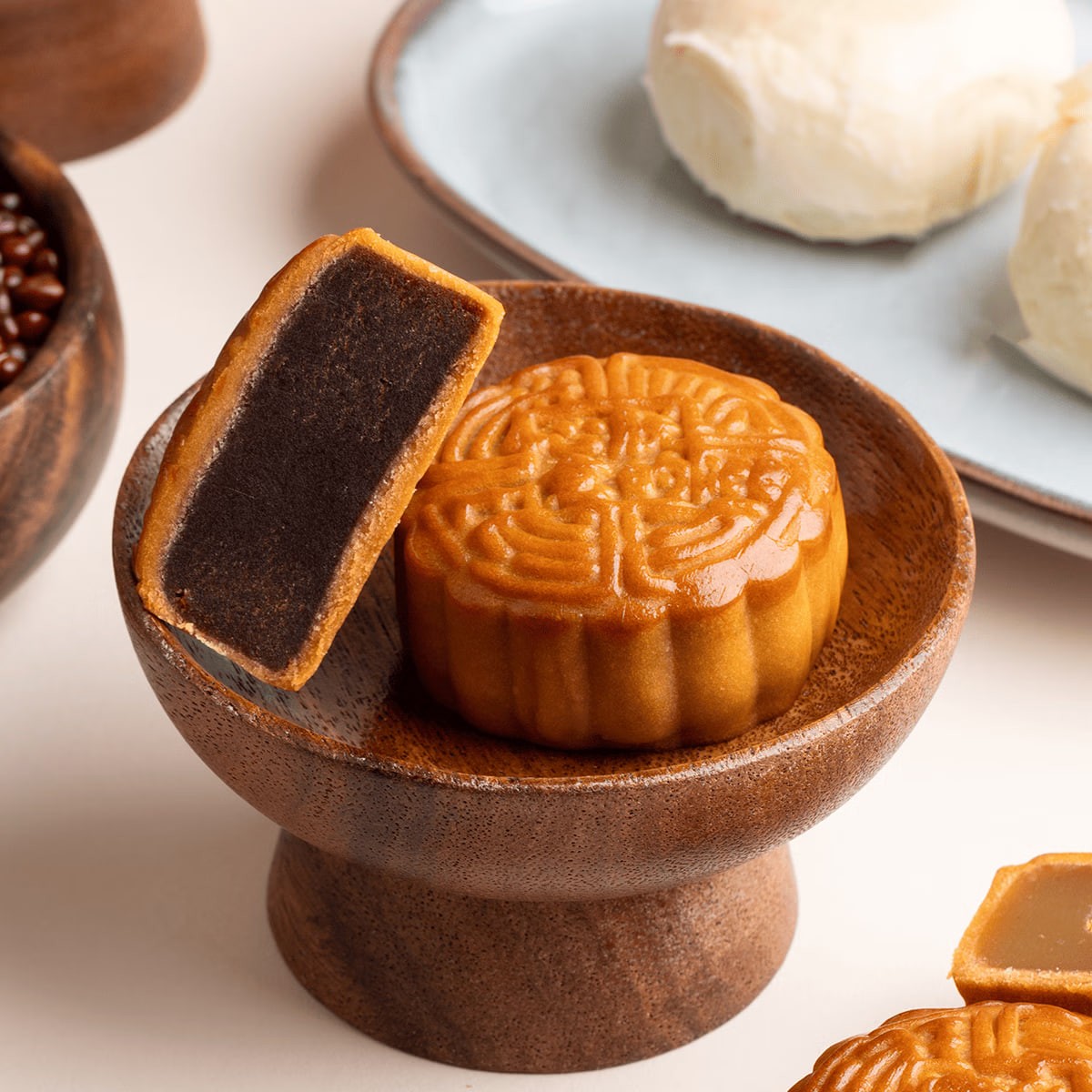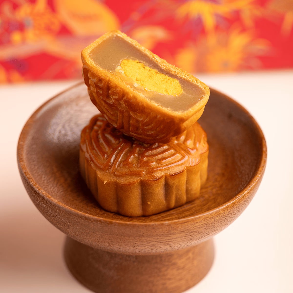 Tea Oil Lotus Seed Paste and Egg Yolk Mooncakes (60g x 2); Lava Custard Mooncakes (50g x 2); Tangerine Peel and Red Bean Paste (60g x 2)