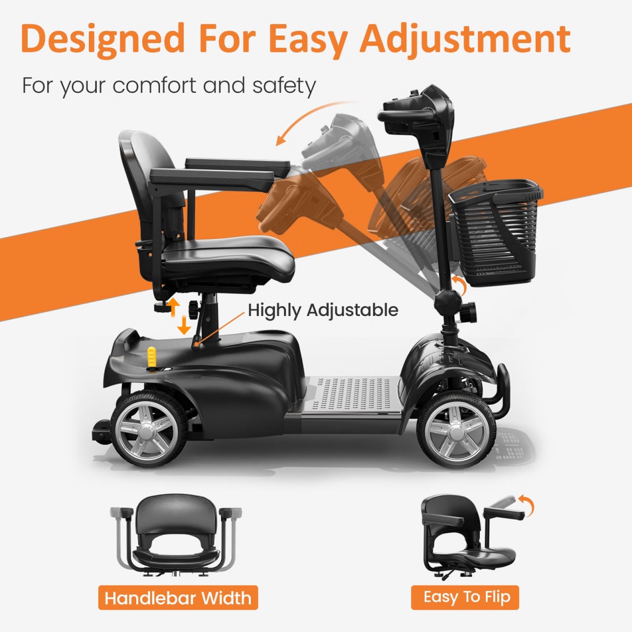 Foldable electric scooter with seat for elderly