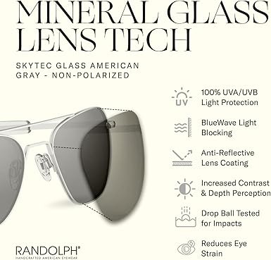 • HANDMADE IN THE USA EYEWEAR: At Randolph, we meticulously craft premium eyewear with attention to detail and an unwavering commitment to quality. Family owned and operated since 1973, our durable and comfortable products are designed and manufactured in Randolph, Massachusetts to stand the test of time.
